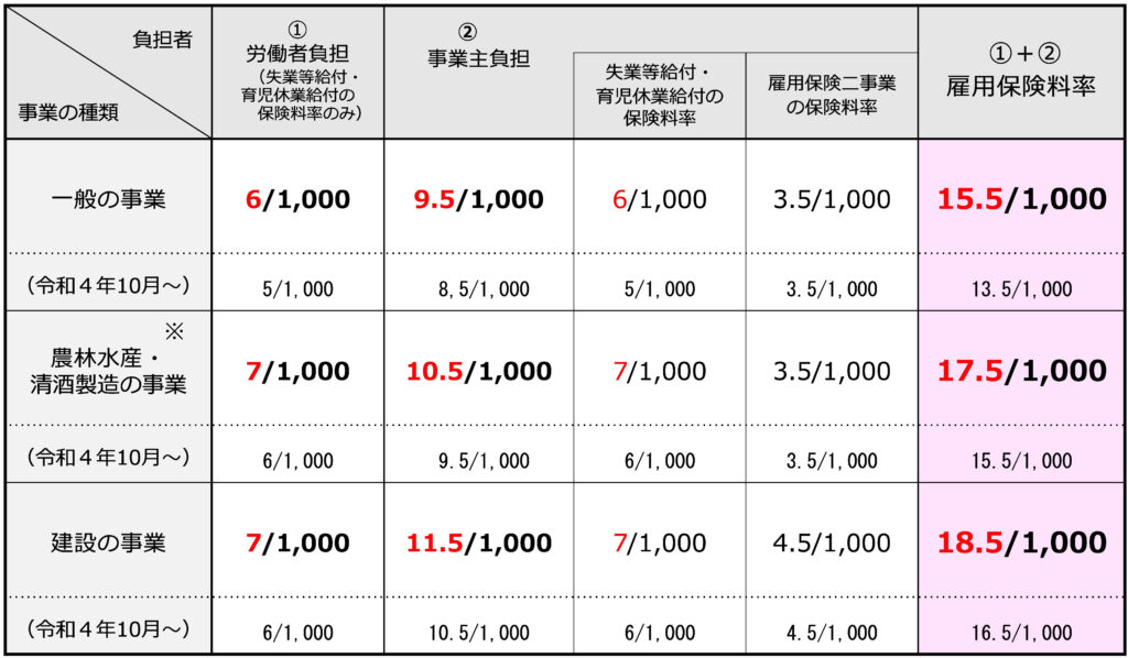 令和5年4月1日から令和6年3月31日までの雇用保険料率が、以下のように変更されます。